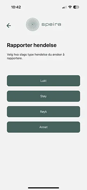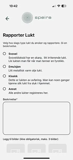 Løsningen ble å utvikle en egen app. I appen kan naboer melde inn dersom de ser røyk eller opplever lukt fra fabrikken. Når de melder inn noe får de noen predefinerte spørsmål som gjør at det blir laget en melding i Speiras system.