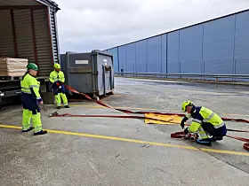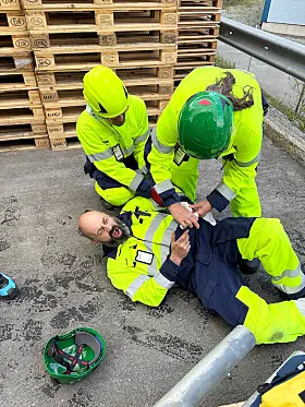 Under øvelsen før sommeren øvde industrivernet på å legge ut slanger, en såkalt slangeleggerøvelse, der en uheldig industrivernleder kappet av seg fingeren. Men kun som en del av øvelsen og ikke på ekte, forsikrer Berg.