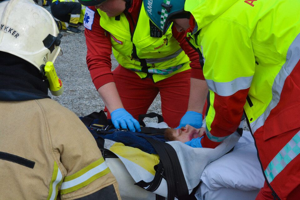 – I sommer hadde vi den første fellesøvelsen, hvor Aker Solutions og Tine samarbeidet. Scenarioet var på Aker Solutions område, men Tine tok imot helikopteret på sitt område siden det er bedre landingsforhold hos dem, sier Hallan.