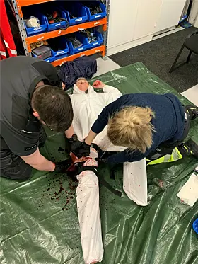 CCB gjennomførte sin første øvelse i akutt blødningskontroll basert på kurset som Næringslivets sikkerhetsorganisasjon arrangerte sammen med NKT-Traume.