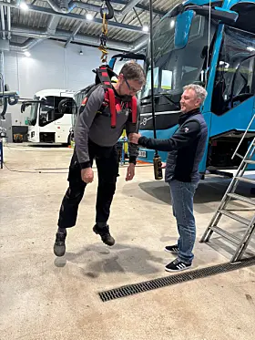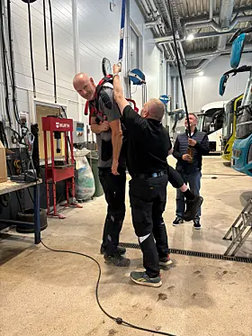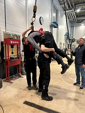 – I tillegg til brann har vi risiko for kuttskader på grunn av verktøyene vi jobber med. Vi jobber en del i høyden i tillegg til at vi har risiko for fall i verkstedgraver. Vi har ikke øvd på fallsikring og redning i høyden tidligere, men siden vi har risiko for dette er det noe vi har sett behov for å kunne håndtere bedre, sier Sundstrøm.